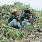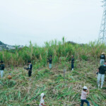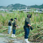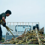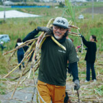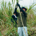 ハーベスターを使わずに、沖縄特有の高い気温と湿気の中で人の手で一本ずつ刈り取り、それをトラックに運んでいく作業は、見た目以上に労力を要します。